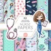 Nurses Medical Digital Paper, Seamless Pattern, Medical Female Nurses Hospital Masks Bandaid Watercolor Pandemic Planner Fabric POD Supplies